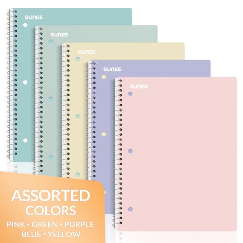 SUNEE Spiral Notebooks, 1-Topic, School Dominated Paper, 8″ x 10-1/2″